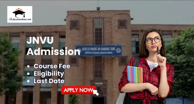 The admission process at JNVU is offered in both online and offline modes. Soon, the university will release the notification for the new academic session 2026 admission. The university accepts the application form offline and online through its official JNVU portal. JNVU Admission last date will be 30 August 2026*. During the registration process, students are required to submit a fee of INR 400. Popular courses offered by JNVU University at the UG and PG levels are BA Economics, MA English, BA (Hons) Political Science, MPEd, BEd, MEd, BSc Physics, BCA, MCA, MSc Botany, B.Pharm, LLB, LLM, and BBA LLB.